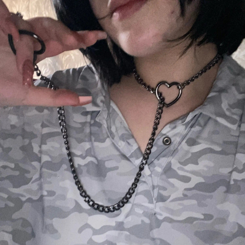 Designed with versatility in mind, the LoveChains™ chain can be easily adjusted to tighten around the neck, transforming it into a stylish choker. It's a simple slip mechanism that offers both comfort and control, tailored to your desires.